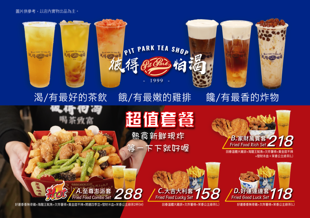 從黃金比例的雞排、鮮嫩酥脆的魷魚,到令人無法抗拒的豪華炸物拼盤,每一口都是真材實料的誠意呈現,讓你在繁忙的生活中找到小小的幸福片段。不僅如此,還有濃郁香滑的奶蓋系列與清爽回甘的醇茶系列手搖飲,讓美味成雙,幸福感翻倍!